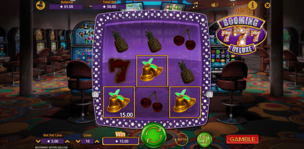 • Old Casino graphics – Booming Seven Deluxe surprises your senses with an authentic casino look and feel with the perfect sound effects and traditional fruit icons.