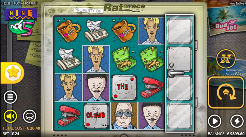 • Play Mode - Nine to Five is a 5x5 reel video slot game with xNudge Wild symbol, xNudge ®, xBet ®, and xWays ®, Middle Management Spins, Ivory Tower Spins, God Mode. Big Win Not Found, 2 types of Scatters, and NoLimit Bonus.