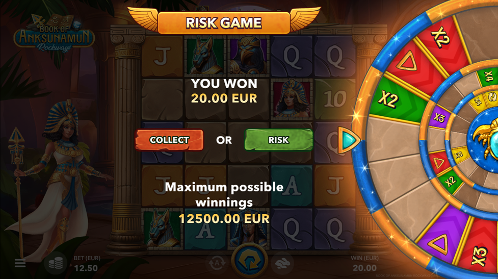 The Free Spins with Special Expanding symbols in the Book of Anksunamun Rockways will create a winning atmosphere when you play this “Book of” slot game from Mascot Games. The magic of the Egyptian Queen will entrance you as you unravel the mysteries of ancient Egypt in the “Book of Anksunamun: Rockways with incredible grand wins. Yeah!