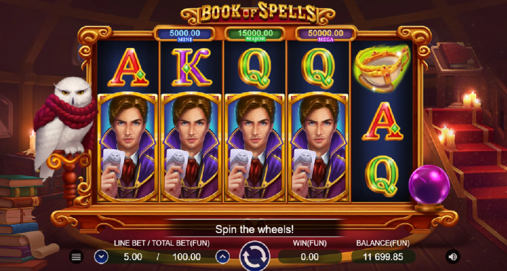 You can double the thrills in Book Of Spells, where you will discover snowy owls and new ways to win in this magical “Book Of” slot game from Zillion Games. Look into the crystal ball to predict when the Book of Spells will reveal your Bonus Game and magical wins. Yeah!