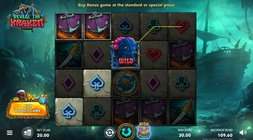 - Play Mode - Reveal the Kraken is a 5x4 reel video slot game with 20 paylines with Wild, Sticky Wild and Bonus symbols, Bonus and Super Bonus Games, Risk & Buy, and Extra Bonus Features.