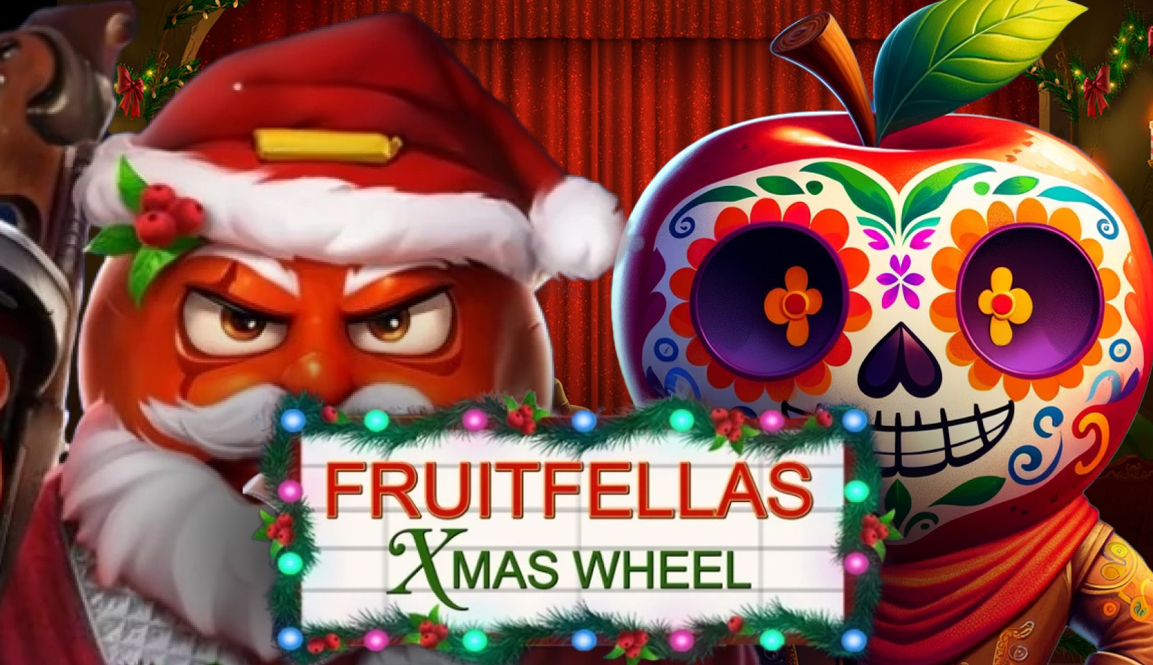 Visit the Gangsta cinema to meet the Fruitfellas Xmas characters and discover the festive features of Fruitfellas Xmas Wheel.