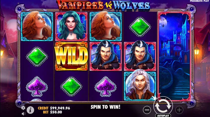 Vampires vs Wolves is a video slot game played on a 3x5 grid with 10 paylines from the impressive Pragmatic Play collection of slot games. Vampires vs Wolves has vampires that can transform into sticky wilds. Two expanding scatter symbols on reels 1 and 5 trigger the wolf free spins or the vampire free spins features. The RTP in Vampires vs Wolves is between 96.49% and 96.38%.