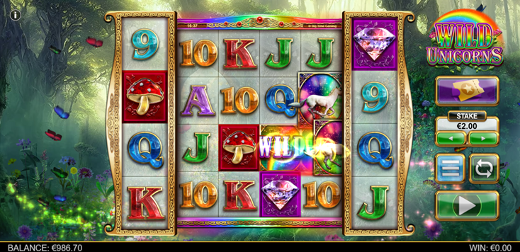 Wild Unicorns is a 6-reel video slot game with 4096-win ways with unicorns that cantor across the grid, creating duplicating wilds from Big Time Gaming.