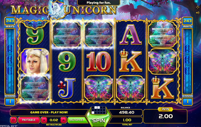 Gameart presents a dynamic unicorn slot game that offers 243-win ways. Playing Magic Unicorn, helps you soar into the kingdom of magic with beautiful unicorn slot game animations.