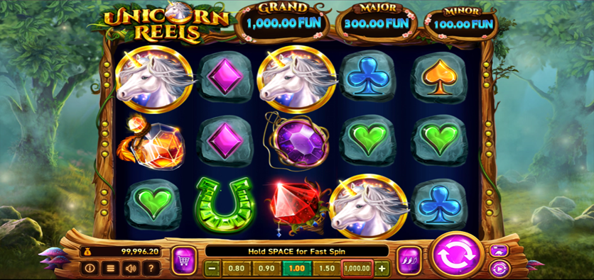 Use the buy feature in Unicorn Reels to bring on the unicorn jackpot game, with grand, major, and minor jackpots ready for the winning. Increase your winnings with the gamble feature. Use the adjustable volatility feature to suit your gaming tempo.