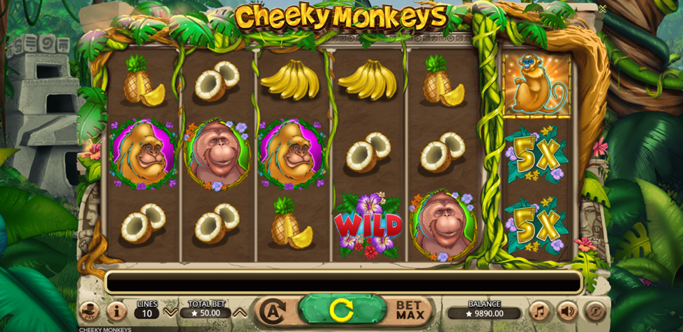 There are a variety of fruit and monkey symbols, with the sounds of the jungle and rhythmic music to transport you into the fragrant jungle of the Cheeky Monkeys.