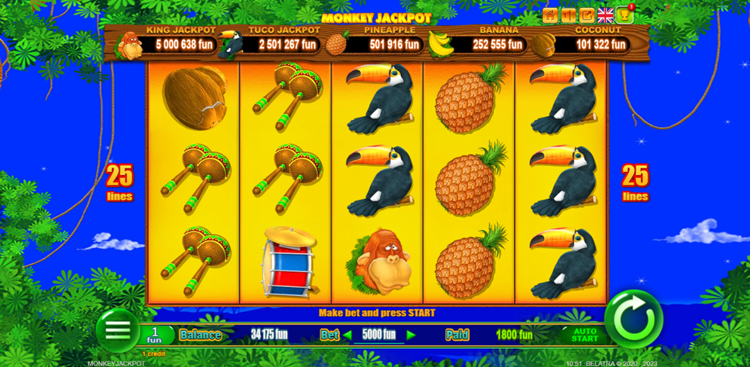 Playing Monkey Jackpot is a fruitful and fun way to celebrate your monkey instinct.