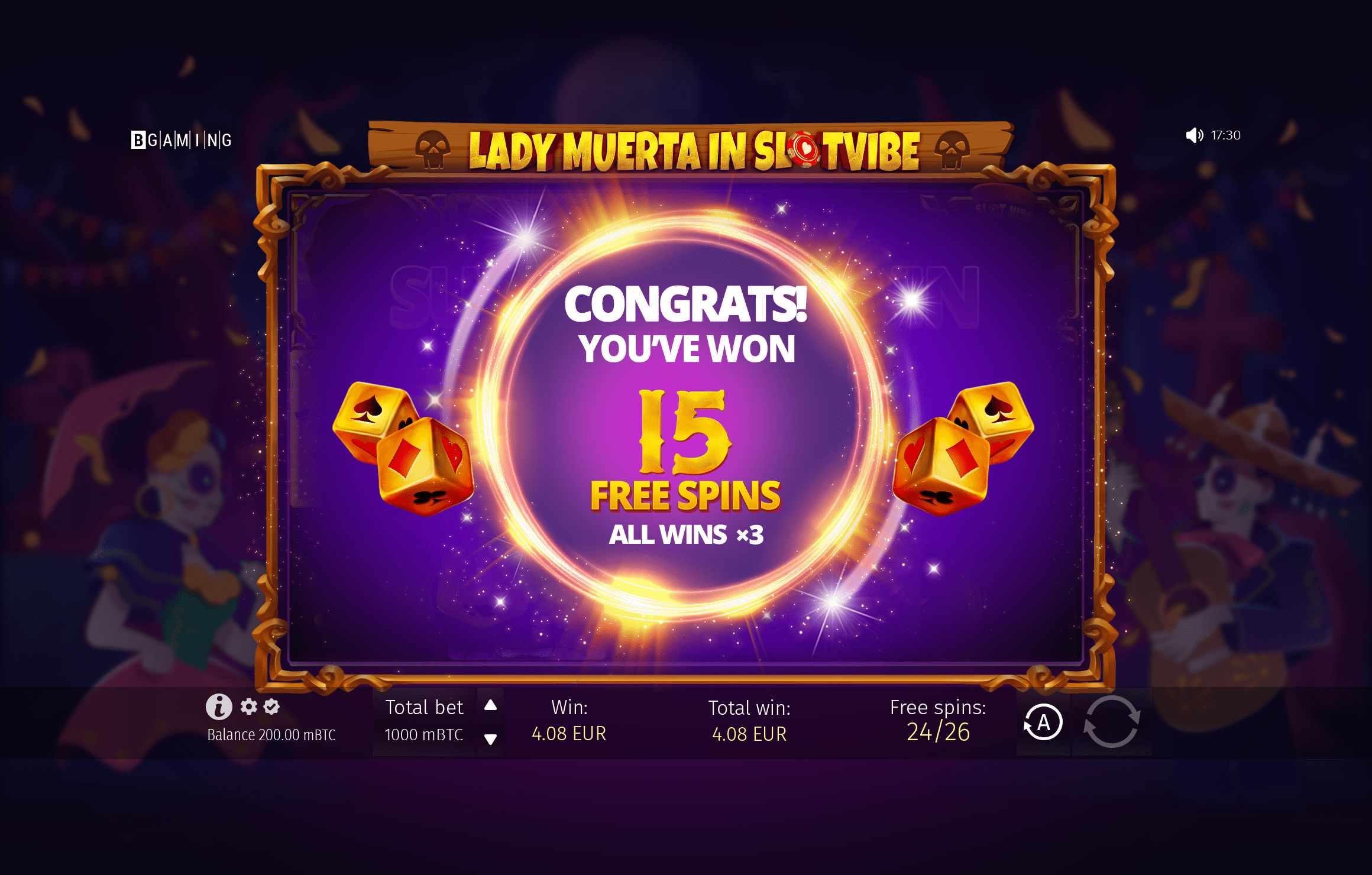 Get three Scatter symbols on your screen – the purple skull – and win 15 Free Spins. All wins you get during this round will be multiplied by 3x. Great stuff, right? And even if you only hit two, you still win something. What’s not to like about it?