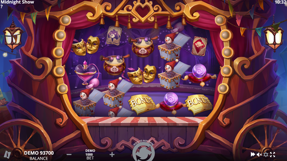 Mreow! Hola SlotVibers! Choose your desired mask as we get into character to play with the Muse of Tragedy and the Muse of Comedy kissing to bring you wins in this compelling, magical stage show slot game from Evoplay. Prepare to do some burlesque high kicks as you dance to the tunes of the Midnight Show where you will get more magic than you bargained for. Puuuuur!
