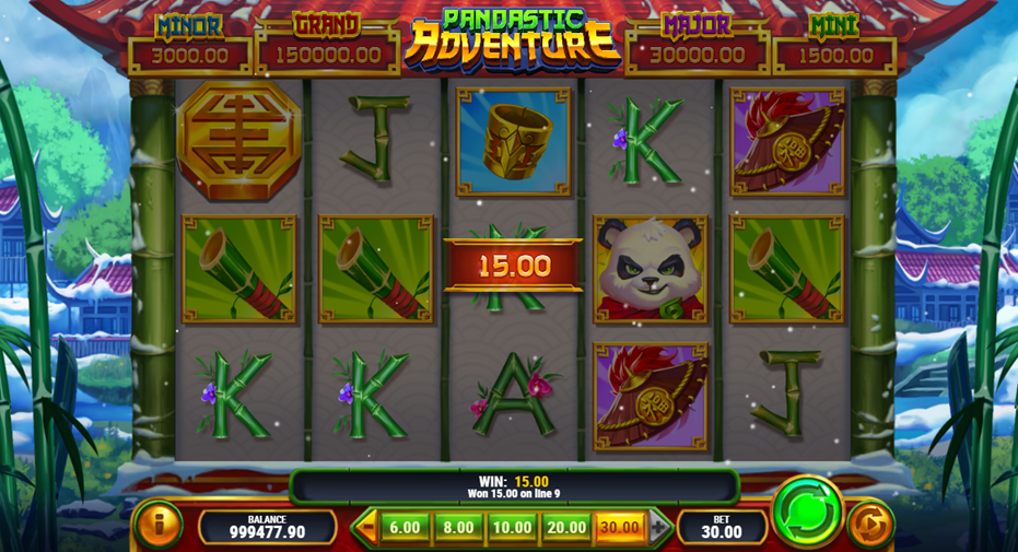 In this oriental-themed Panda slot game, Wilds trigger the Temple Treasure Bonus in Pandastic Adventure. You will be excited to know that Play n Go has incorporated Hold, Spin and Win mechanics offering a Grand Jackpot of up to x150,000 of your bet in this Pandastic Adventure. Win Free Spins by collecting the Wilds, and each Scatter during Free Spins adds an extra Free Spin. Purr!