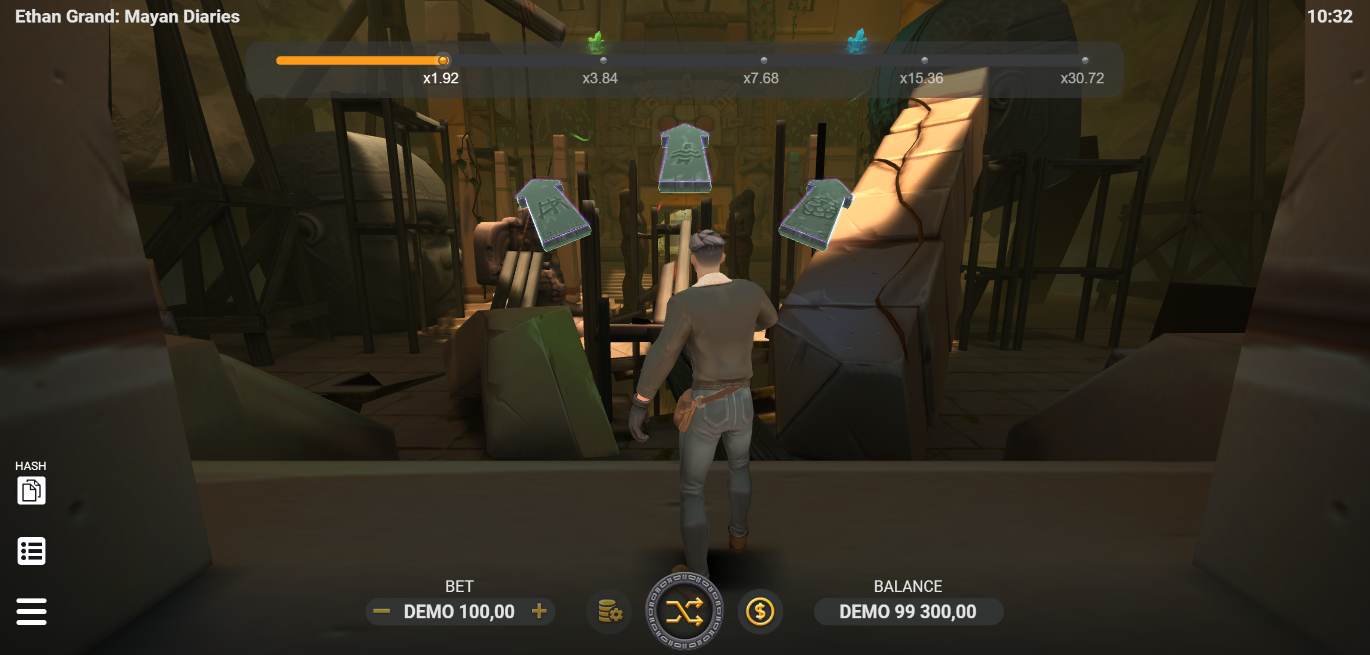 - Play Mode - Ethan Grand: Mayan Dairies is an instant game where you control the hero’s action and has Stones, Risk, Collect, Keys, Random, Left and Right Buttons, a Progressive System, and a Bonus Game.