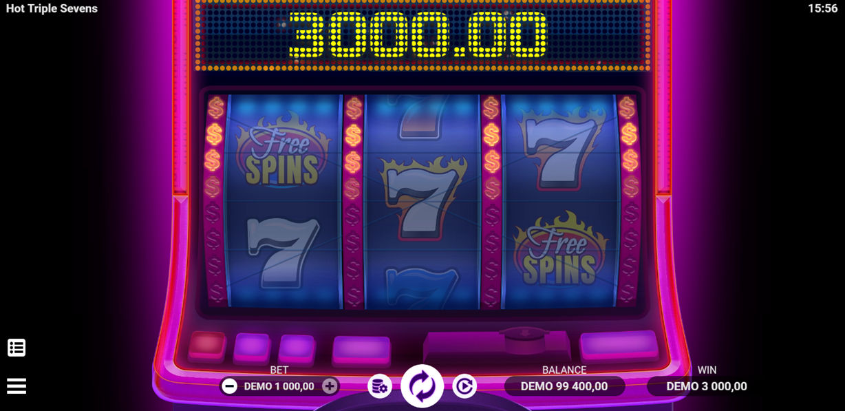 • Play Mode – Hot Triple Sevens is a classic 3x3 reel video slot game with 5 paylines, Seven on Fire, and Hot Triple 777 symbols, Free Spins symbol and 10 Free Spins with multipliers x3.