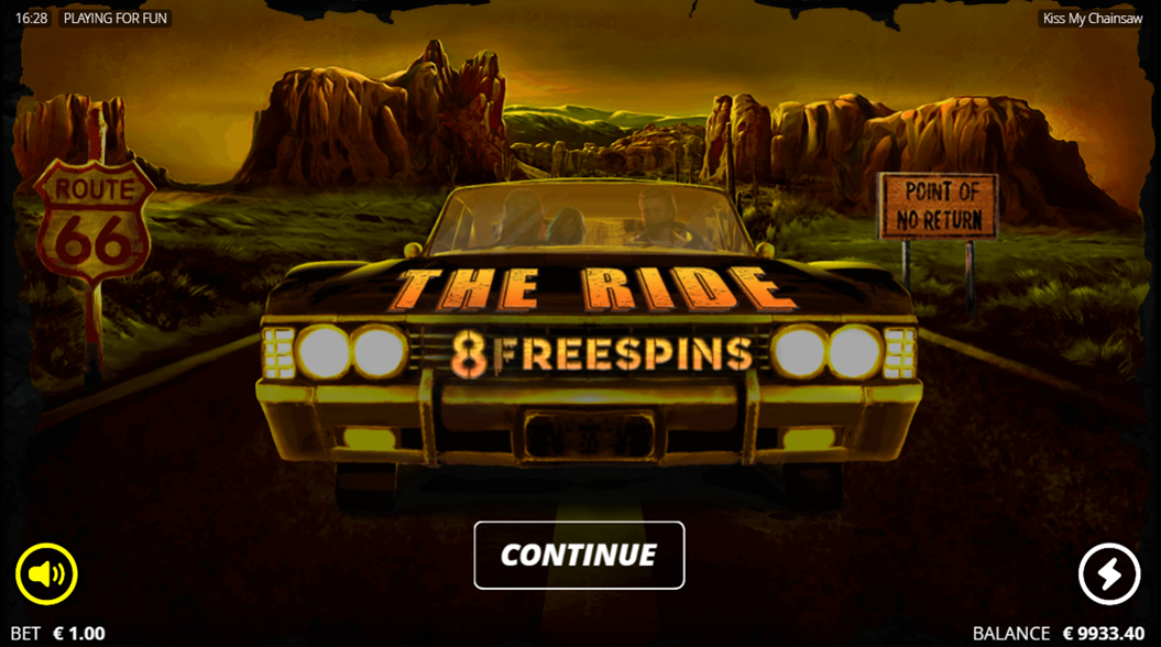 - Chainsaw graphics - Kiss My Chainsaw has a fantastic display of chainsaw graphics that will immerse you in this slot game, with laid-back sound effects, a cast of hitchhiking passengers ready to be killed by Chainsaw Larry with all his travel equipment, like keys, backpacks, cameras, and cars.