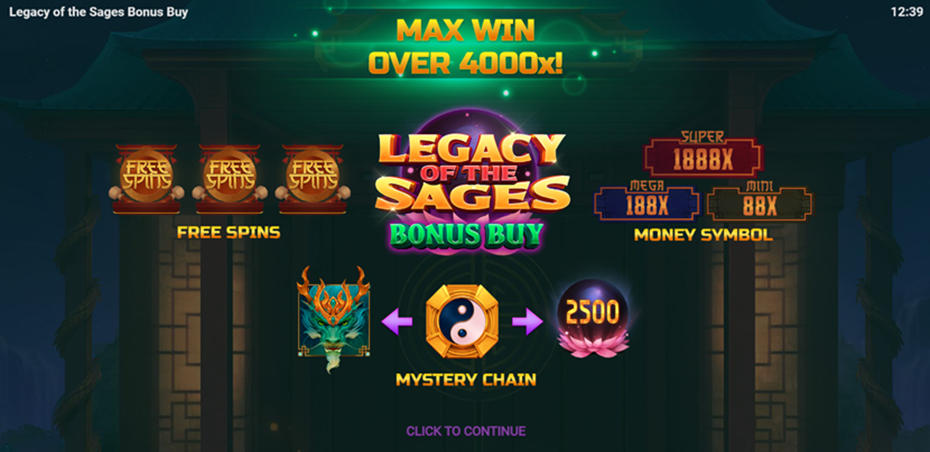 Get into the wild dragon groove with the Legacy of the Sages Bonus Buy, which will fire up your chances of getting up to 18 Free Spins with additional Free Spins. Play the Jackpot games that pay up to x1 888 of your bet. The Mystery Chain Feature will turn into Wild or Money symbols to increase your chances of winning
