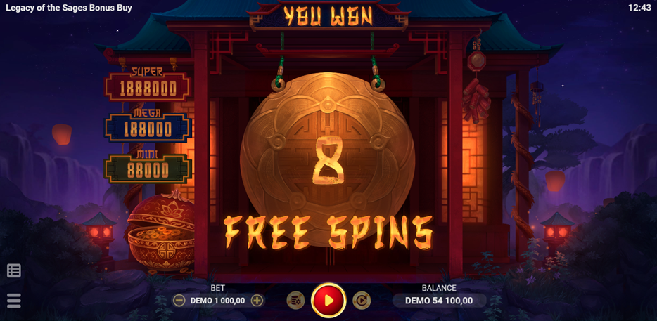 Legacy of the Sages Bonus Buy has super jackpot options that pay up to x1888 of your bet and up to 18 free spins in a round. SlotVibe Casino hopes you enjoy playing this oriental-themed slot game, Legacy of the Sages Bonus Buy by Evoplay, as much as we enjoyed reviewing it.