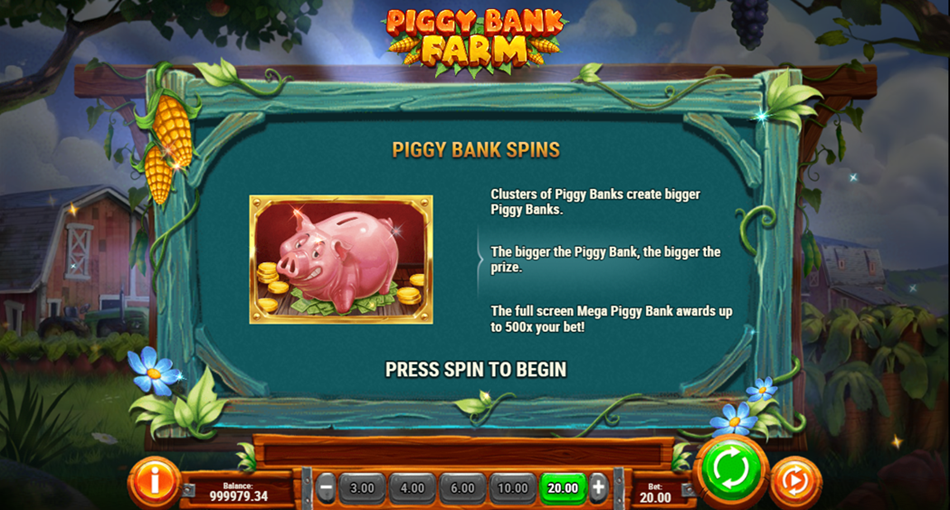 • Minimum and maximum bet - Piggy Bank Farm has a minimum bet of 0.10 and 50.00 as a maximum bet.