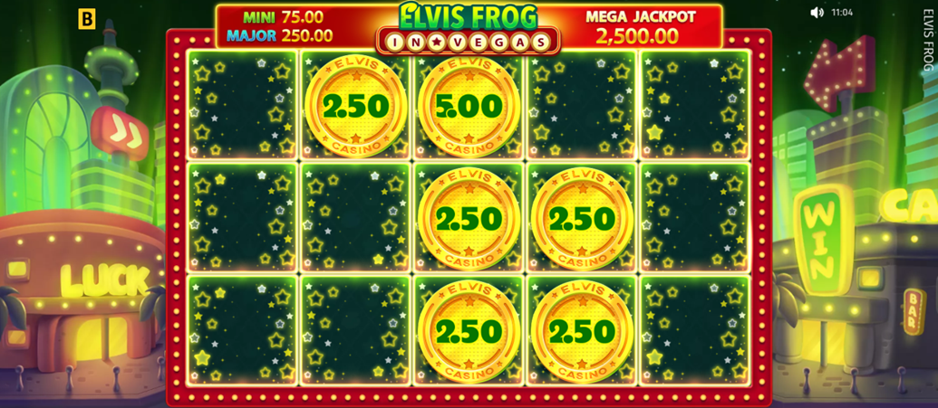 • Medium - High volatility - Elvis Frog in Vegas has a medium to high volatility, making for an exciting Vegas-style play.