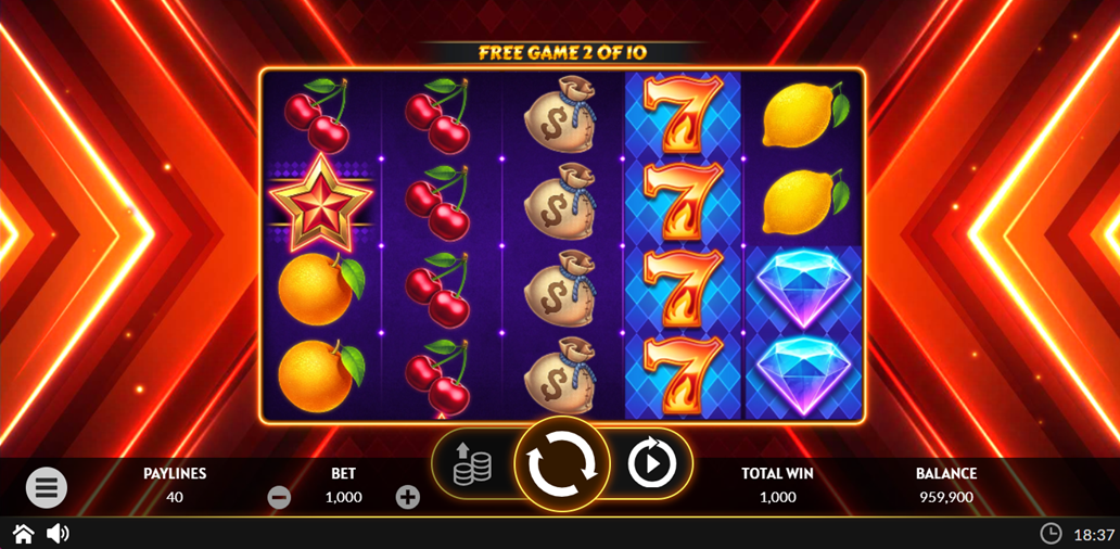 • Free Games - Extra Free Games can be won during the Free Games. During the Free Games, 7s are an additional Wild symbol.