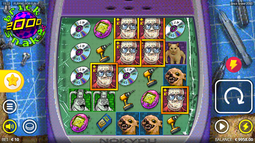 When you encounter the Nokyou grid of Brick Snake 2000 with its cheerful pixelated-type graphics that include sim cards, power drills, and CDs, you will thrive on the bonus games and free spins. The classic 2000s sound effects, like the early Nokia ringtone, make Brick Snake 2000 a slither into nostalgic fun wins, where the snek can eat itself, the egg, or slayer symbols. When the snek eats up the special symbols like the collector 2000 and the max win, you can expect explosive multipliers of up to x8110. The god mode and god mode deluxe have excellent multipliers, and the double or nothing feature will bring you to the maximum multiplier of Brick Snake 2000.