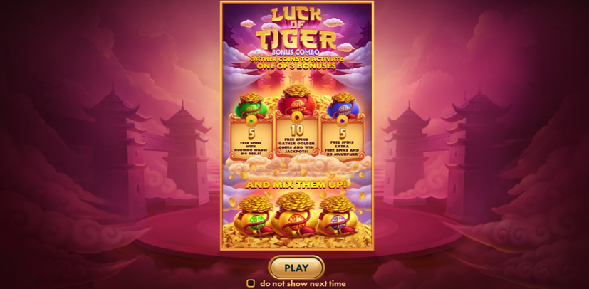 Luck of Tiger : Bonus Combo Main Features : Bonus Combo, Free Spins Bonus, Prosperity, Jackpot, Longevity, Prosperity Jackpot, Longevity Jackpot, Prosperity Longevity, Mega Bonus, Letter Sets.